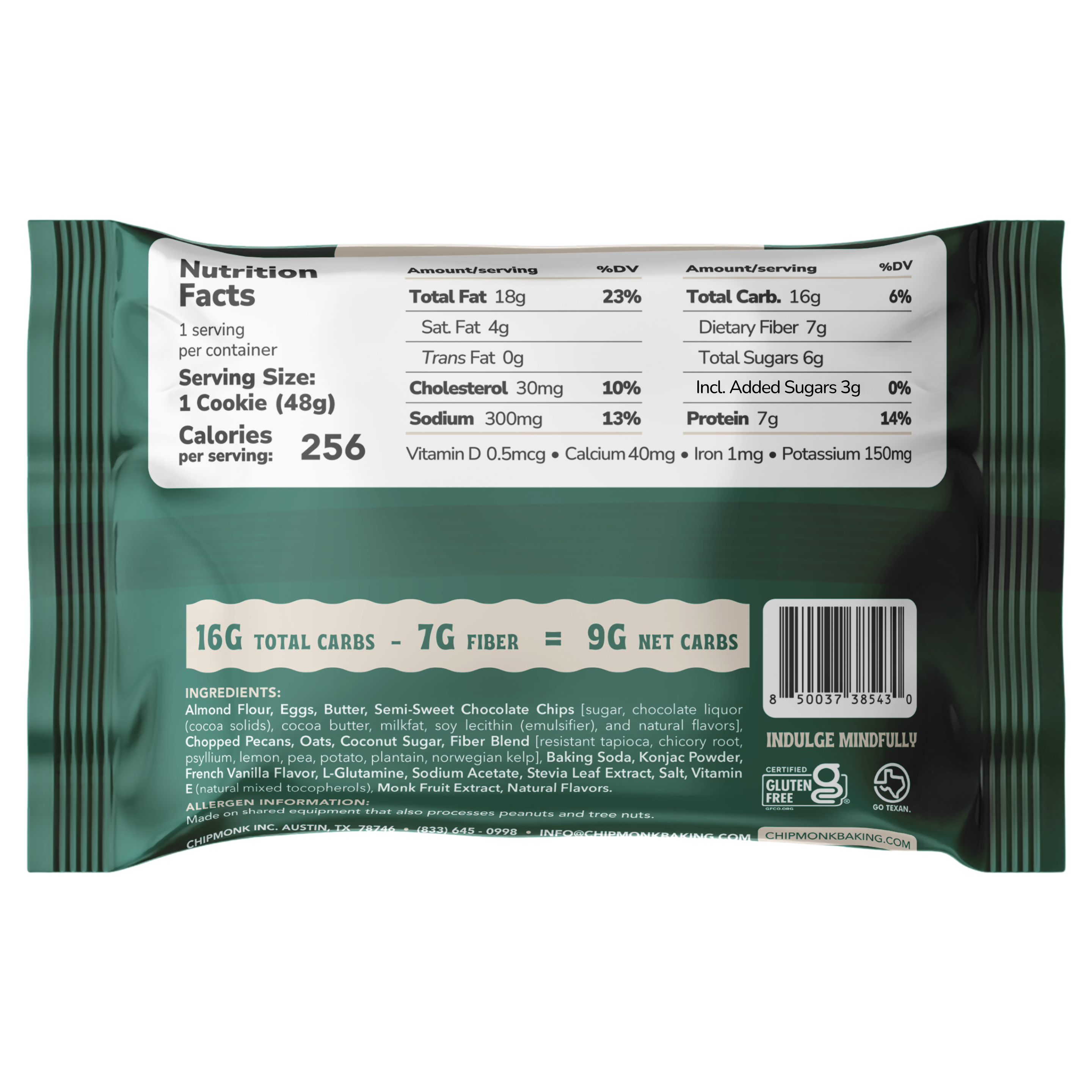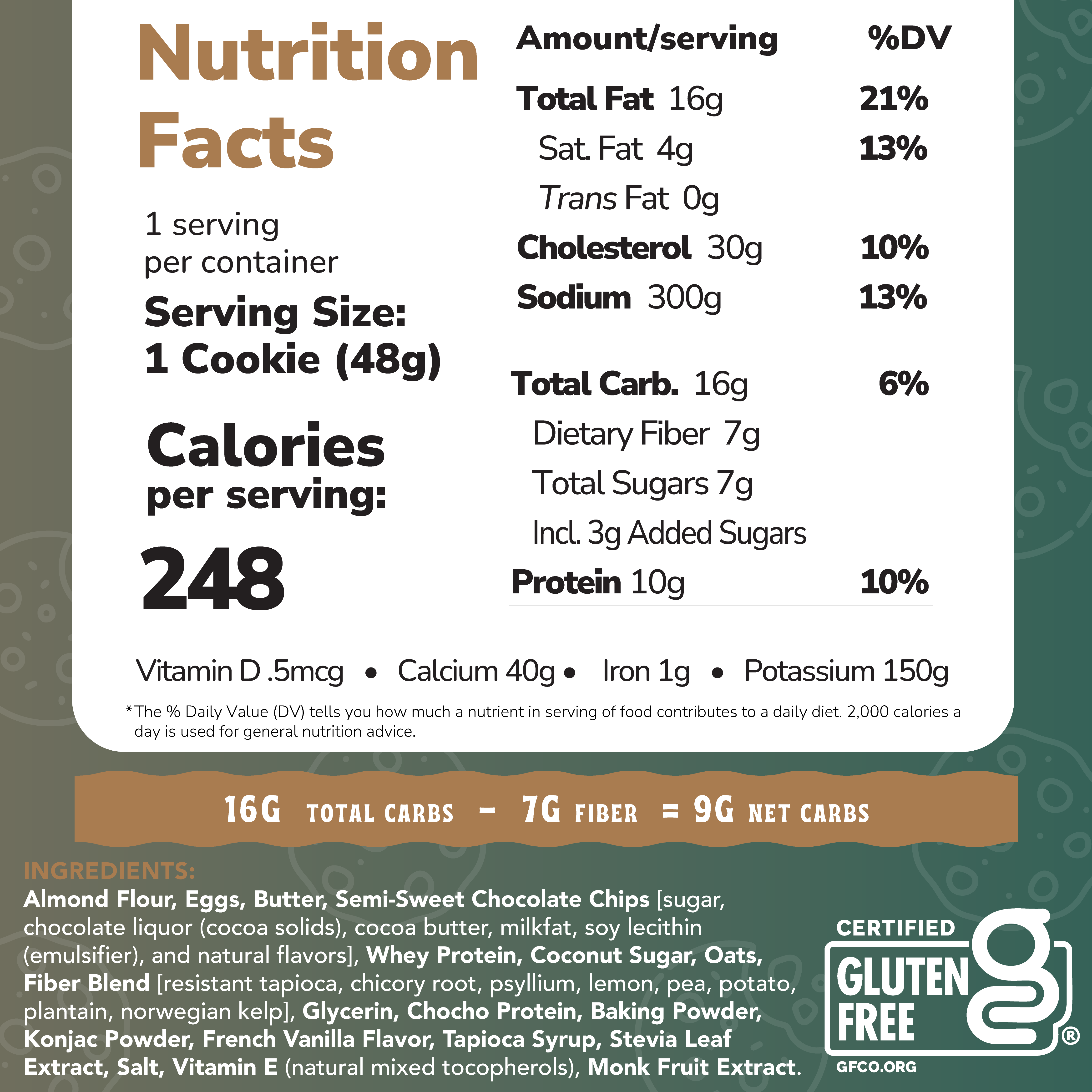 All of our cookies have 1-4 grams net carbs depending on the flavor while our bites are 1 gram net carb each. To calculate net carbs, subtract fiber and allulose from total carbs. Example: 1 cup of broccoli has 6g carbs and 2.4g fiber = 3.6 net carbs. Recommended net carbs on keto: 20g or less/day.
