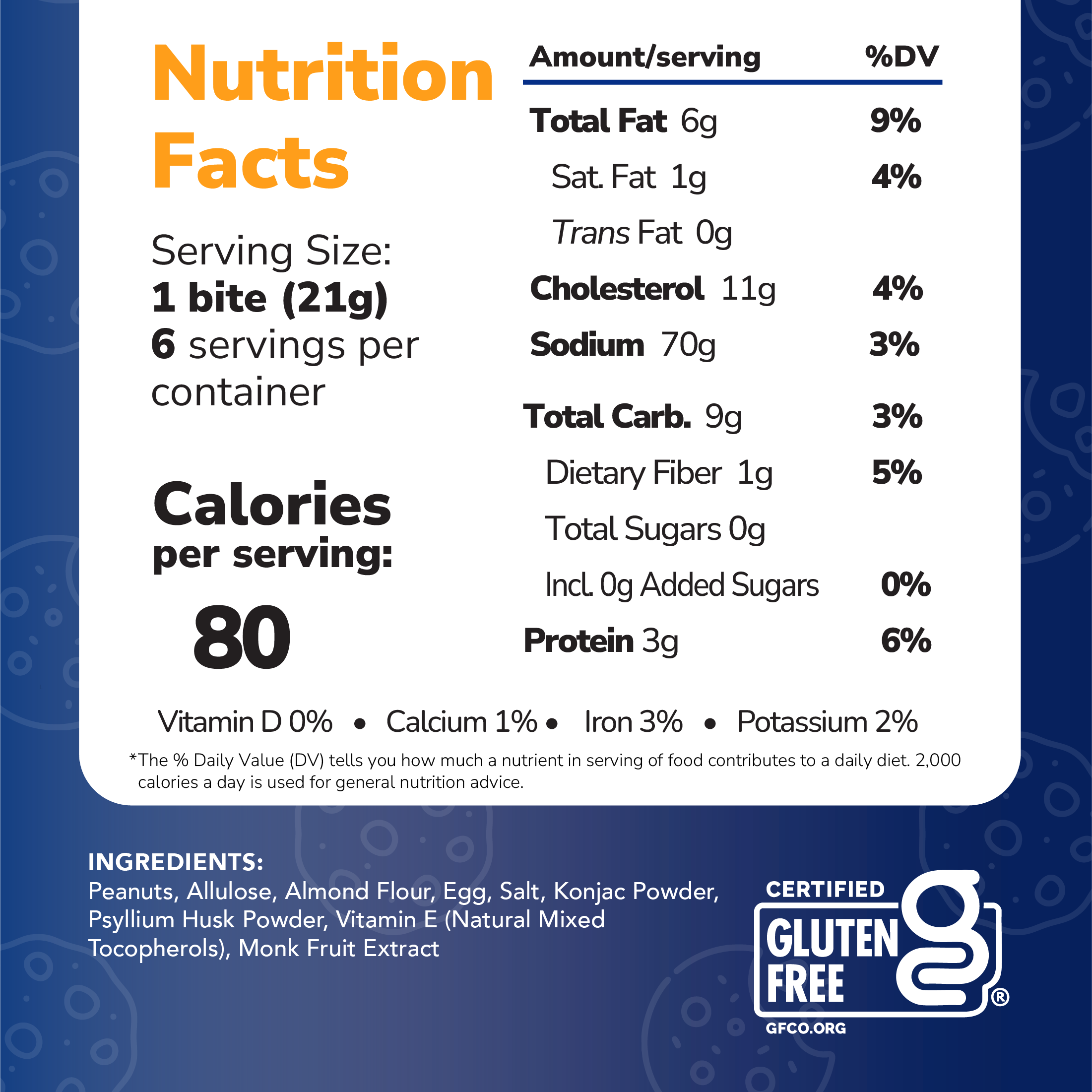 Only 1 net carb and 80 calories per bite. Made from almond flour and sweetened with monk fruit, these bites are perfect for keto, low carb, gluten-free, and low sugar diets. Trust us, you are going to love them. Try them risk-free with our money-back guarantee!