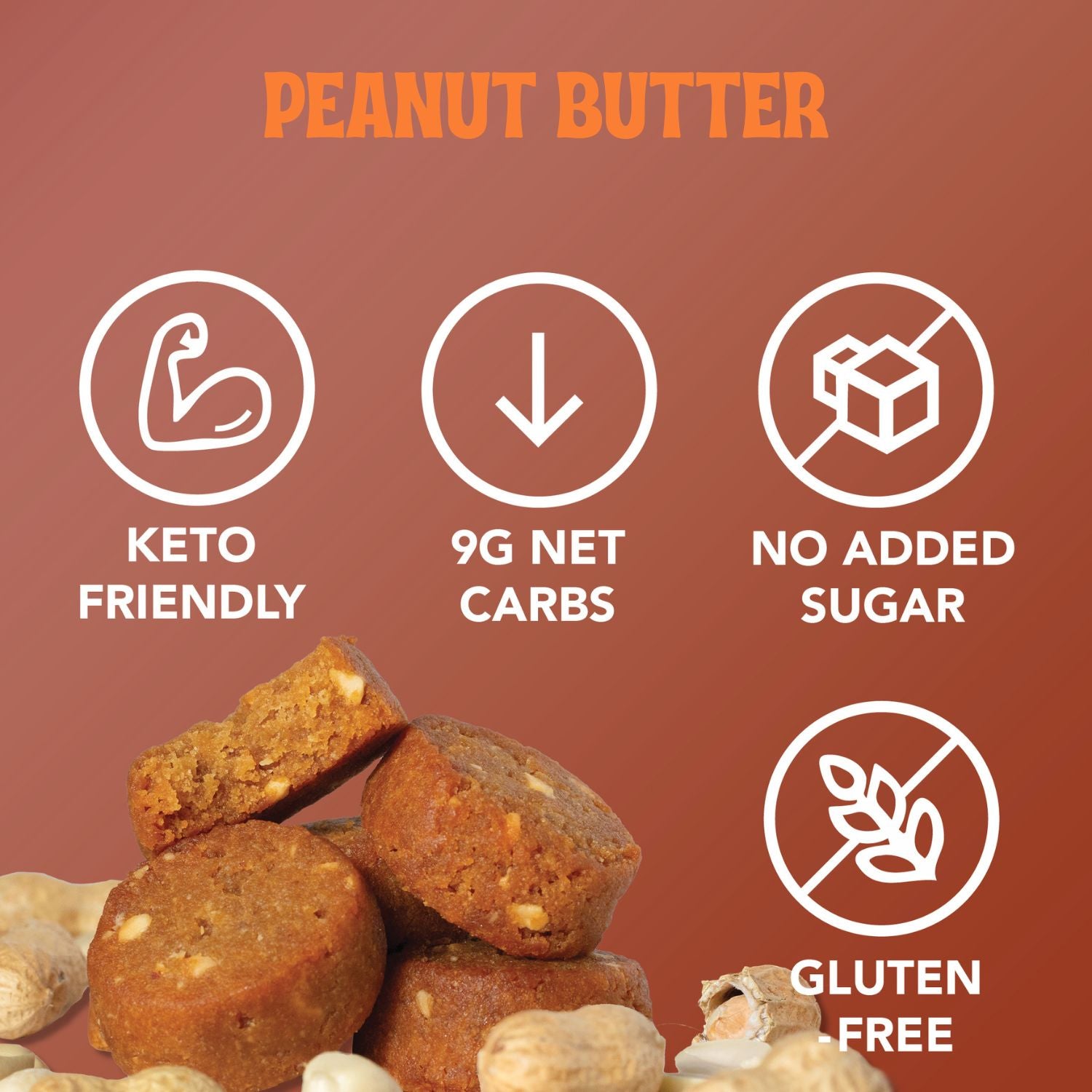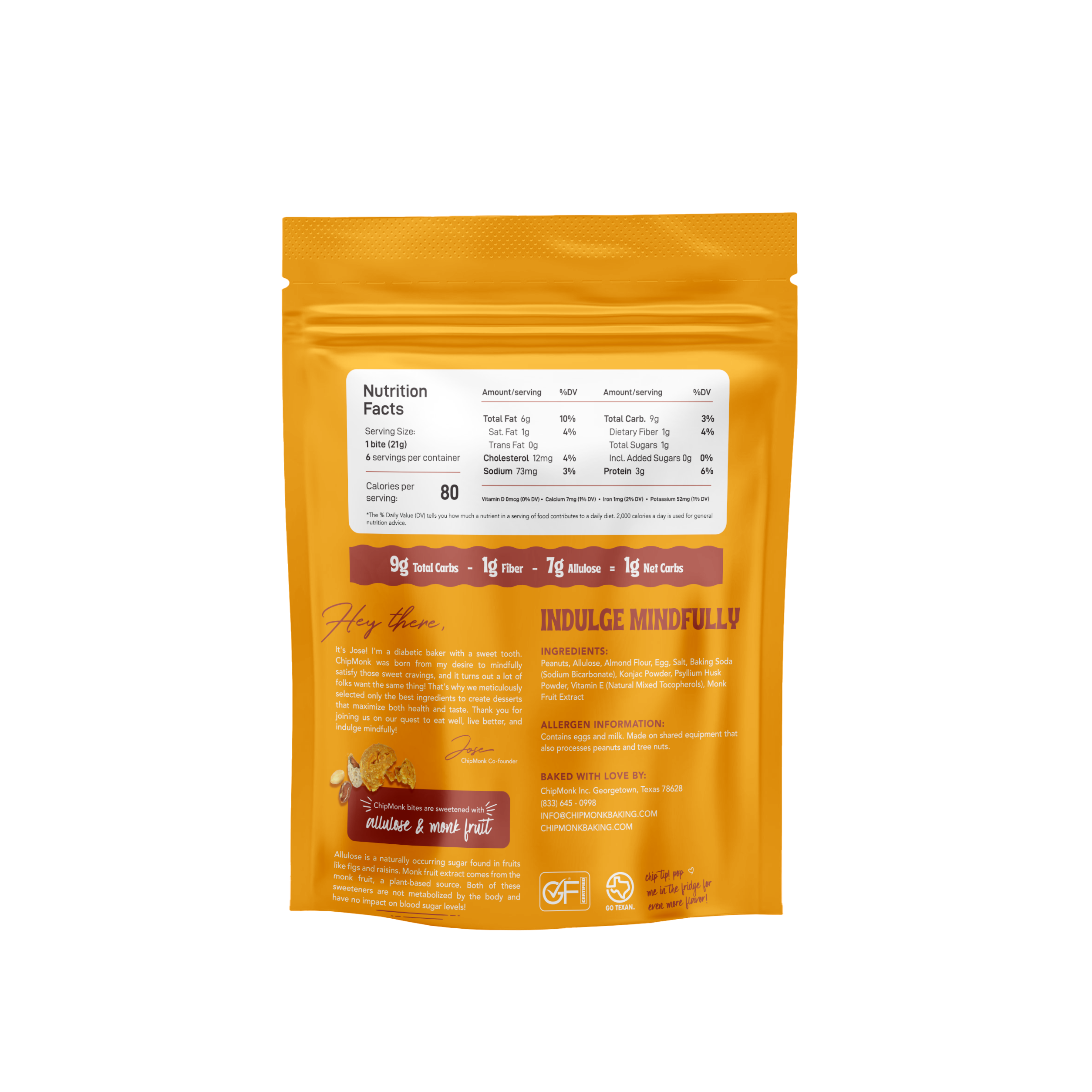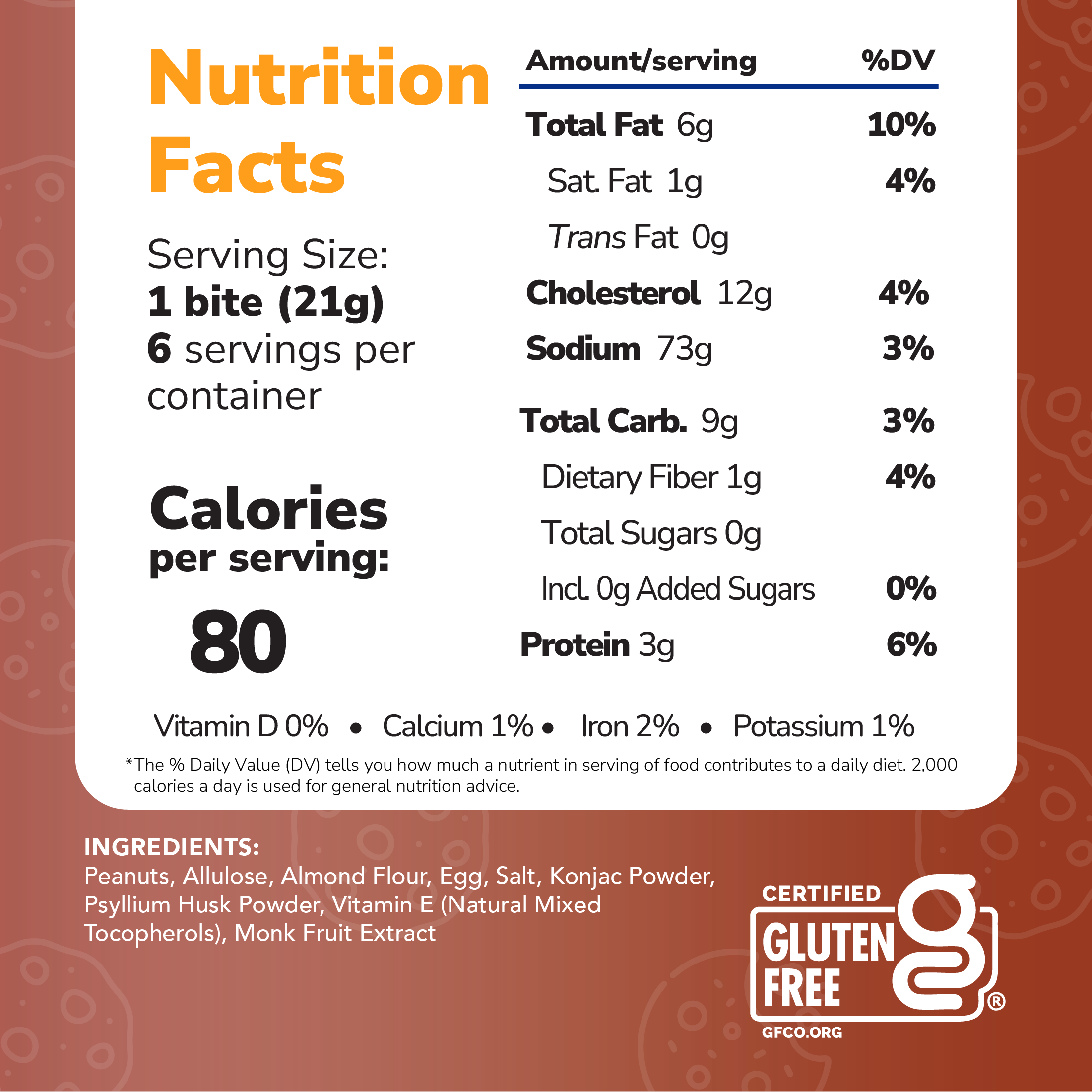 All of our cookies have 1-4 grams net carbs depending on the flavor while our bites are 1 gram net carb each. To calculate net carbs, subtract fiber and allulose from total carbs. Example: 1 cup of broccoli has 6g carbs and 2.4g fiber = 3.6 net carbs. Recommended net carbs on keto: 20g or less/day.