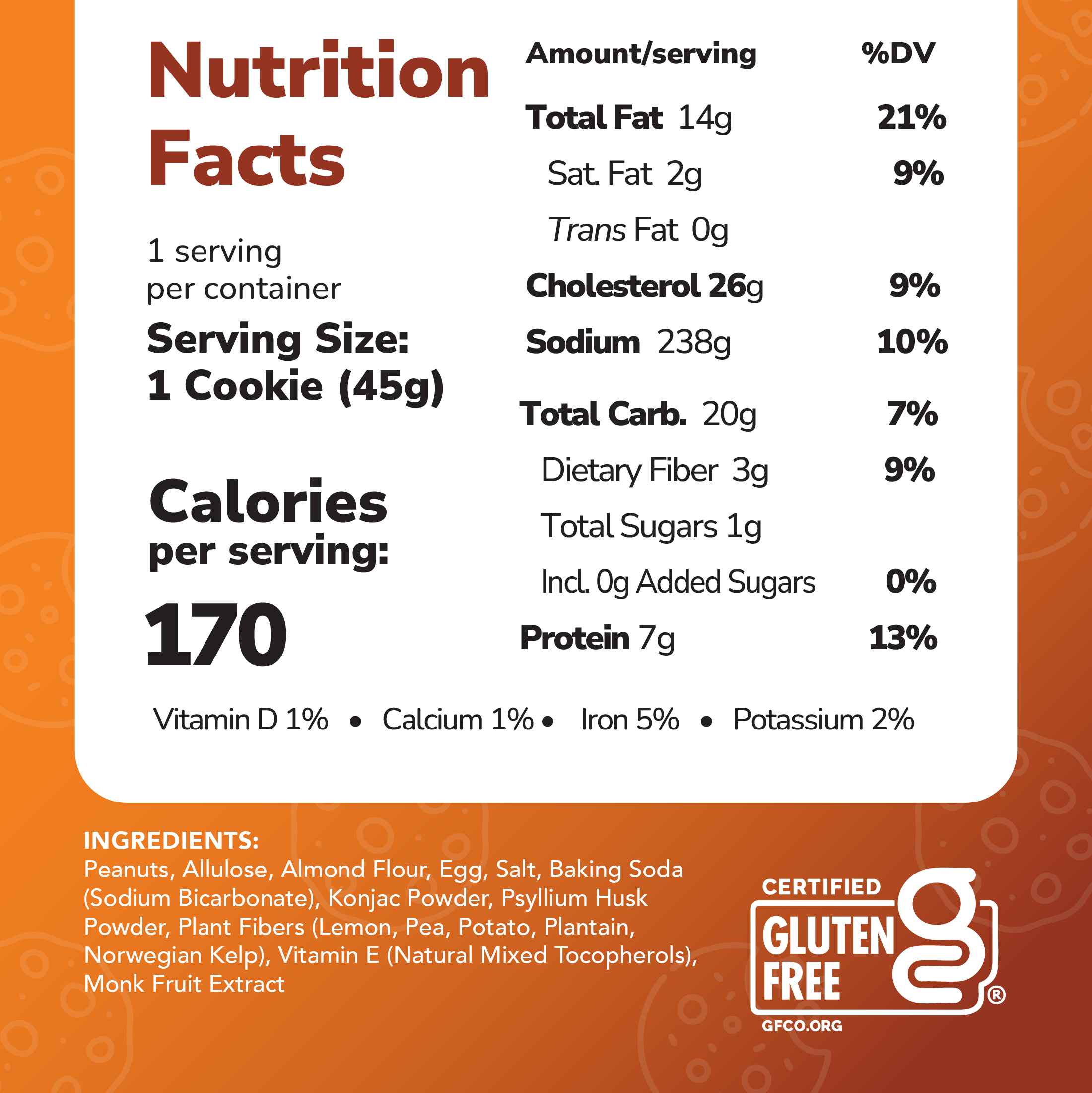 Guilt-free peanut butter bliss is finally here! ChipMonk's take on the traditional peanut butter cookie isn't just delicious, it is also naturally low carb and packed with 9g of protein! Soft-baked with smooth creamy peanut butter and crunchy peanuts, this is a cookie your tastebuds will never forget.