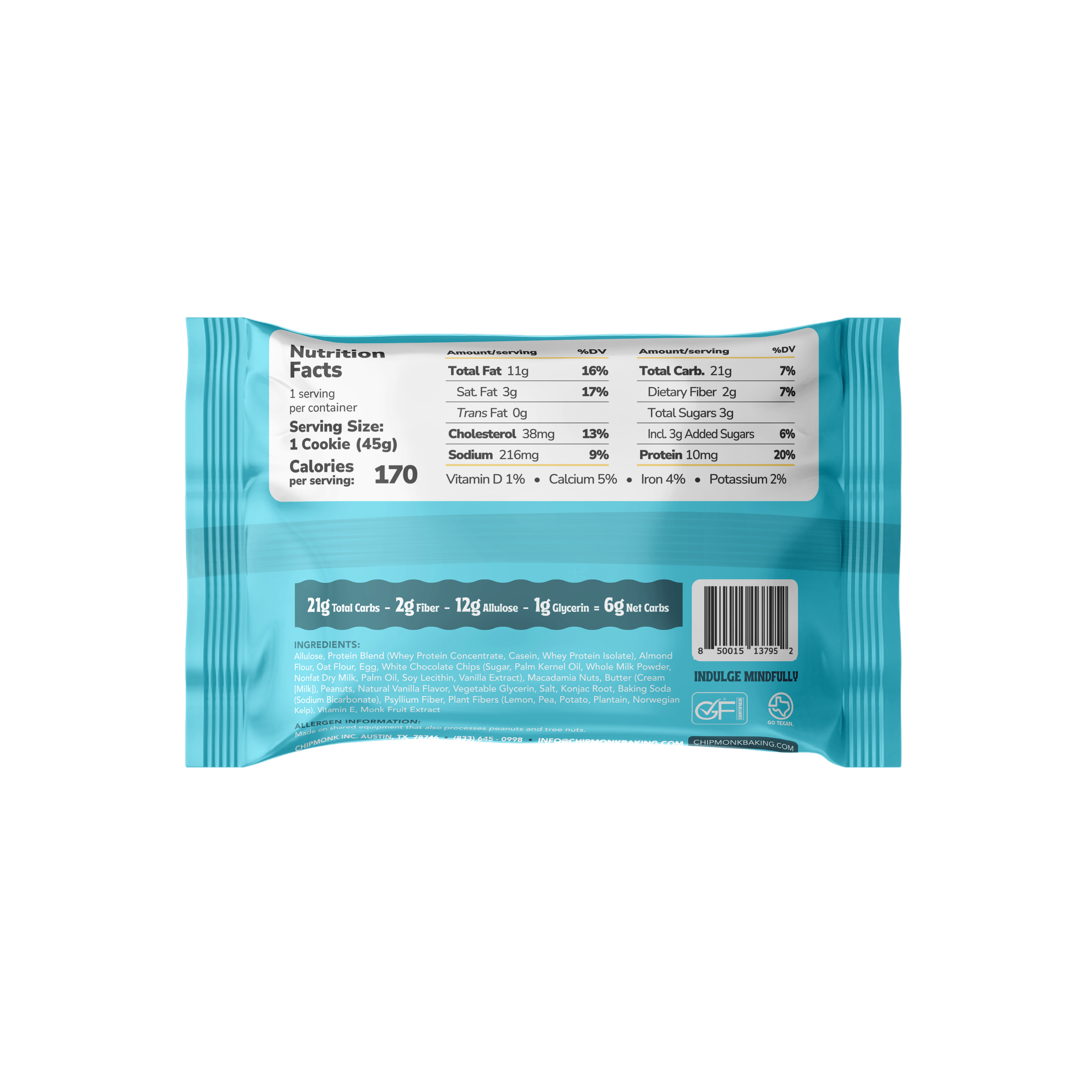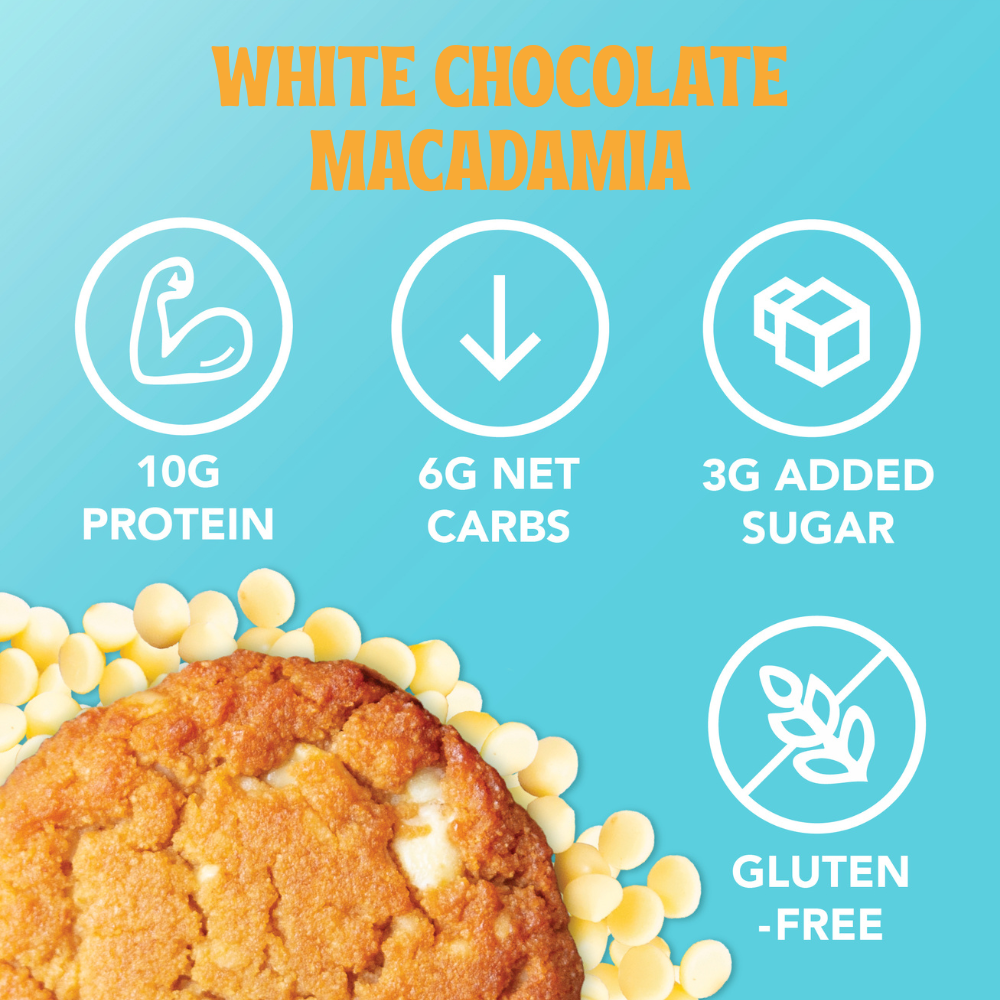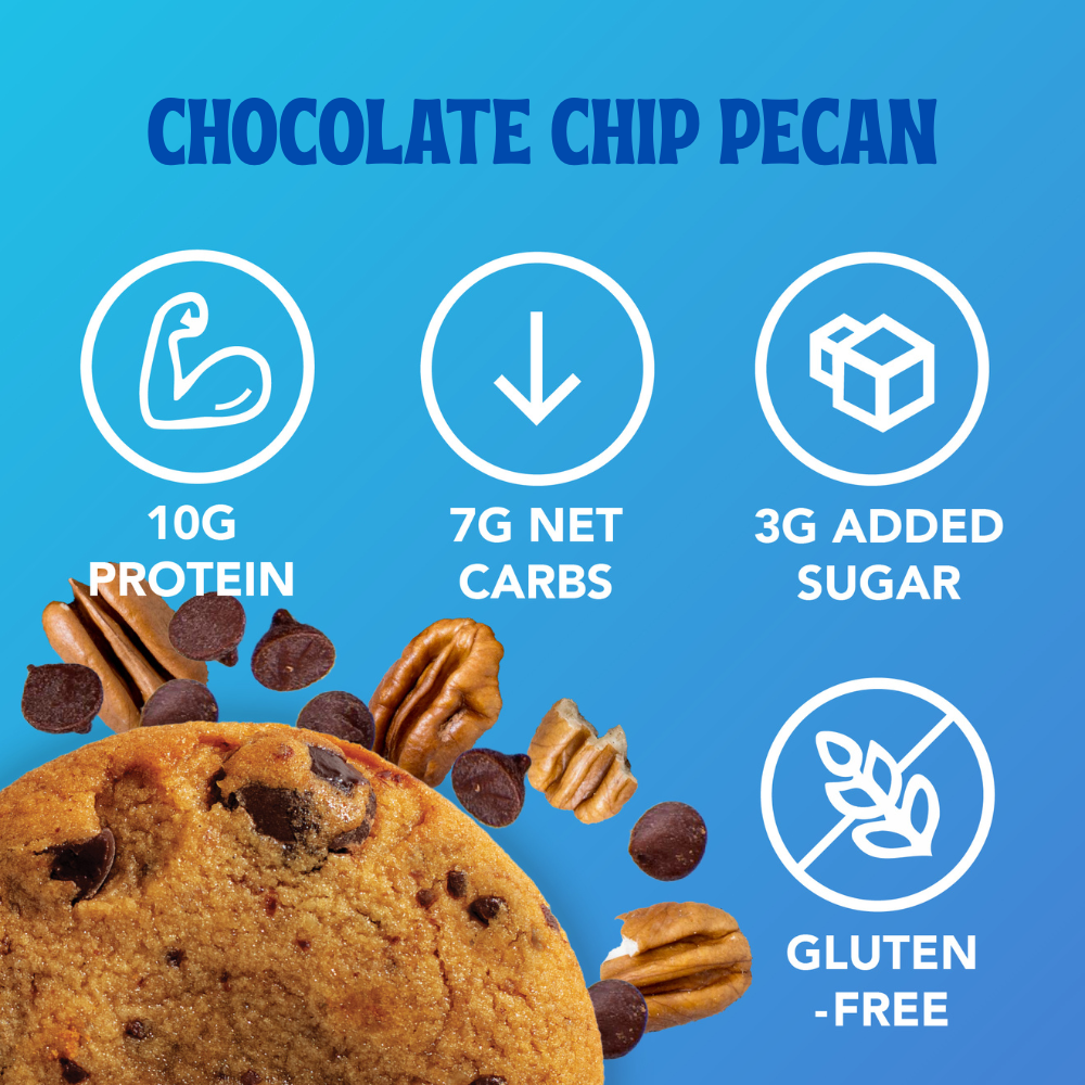 Variety Pack Includes: Chocolate Chip Pecan, White Chocolate Macadamia, & Peanut Butter Protein Cookies